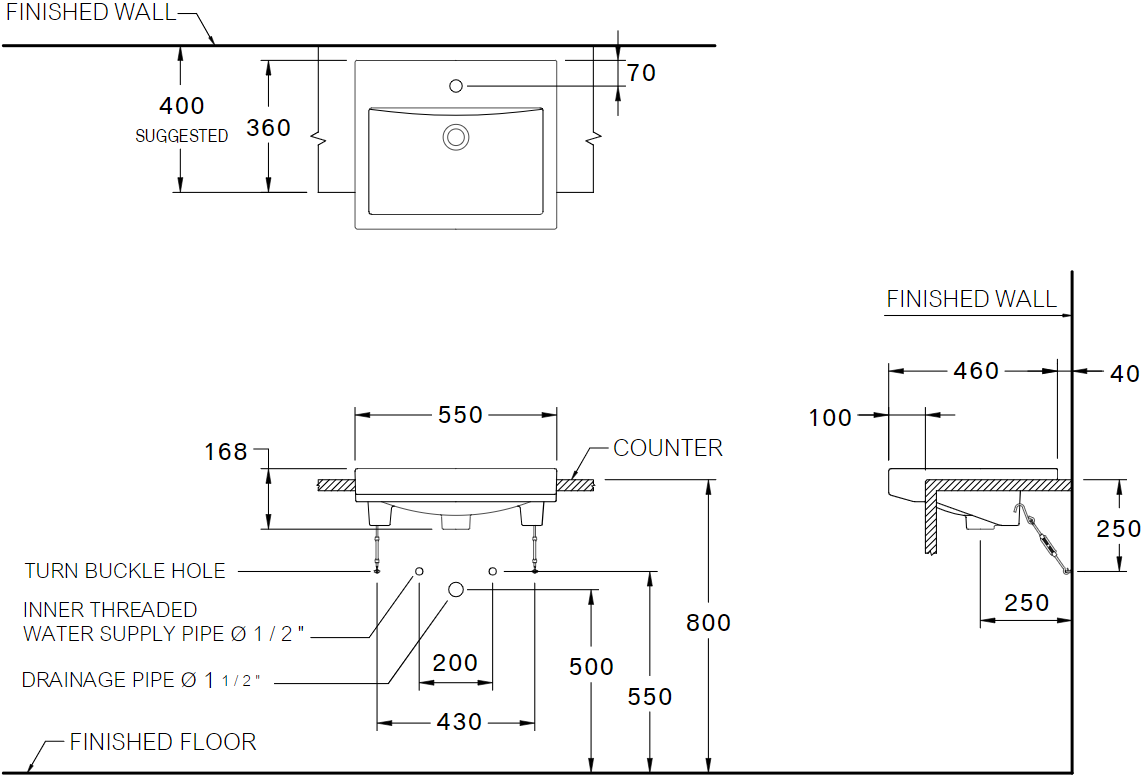 Kích thước (R x D x C): 460 x 550 x 168 mm Chất liệu: Ceramic, màu trắng