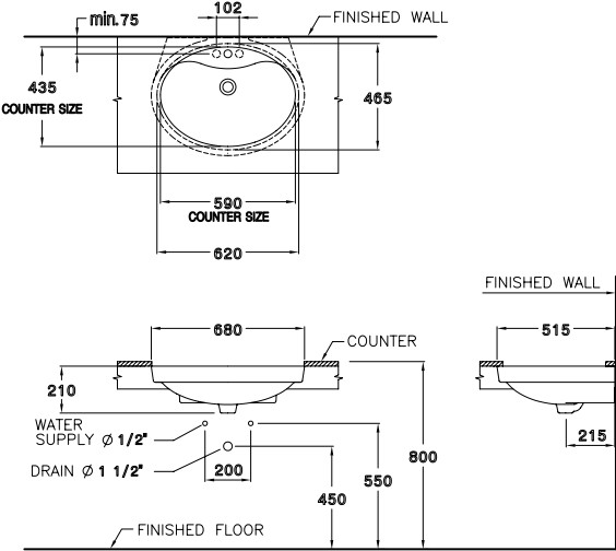 Dòng sản phẩm: Cyndy Kích thước (R x D x C): 515 x 680 x 210 mm Chất liệu: Ceramic, màu trắng