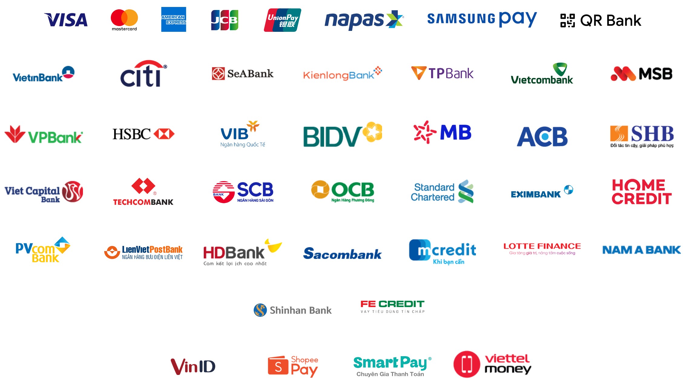 - Chấp nhận thẻ tín dụng Visa, MasterCard, JCB, Union pay của 26 ngân hàng trong nước phát hành